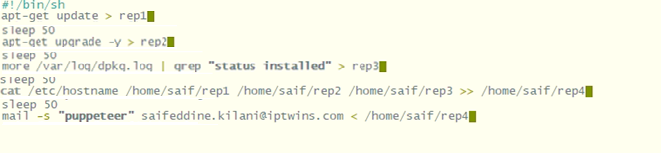 - La 4e ligne installe les mises à jour identifiées avec et met la réponse dans un fichier nommé rep2.