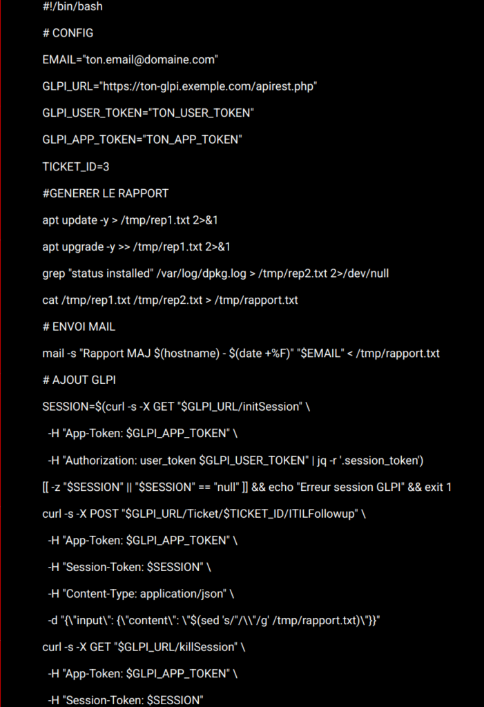 Voici un Template du scripte final qui envoi le contenu par mail mais aussi sur un serveur glpi via une api :