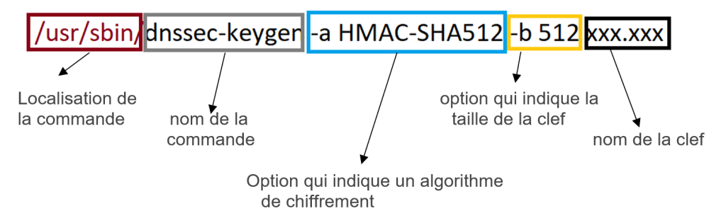 Entre autre, nous allons créer les clefs avec la commande dnssec-keygen :