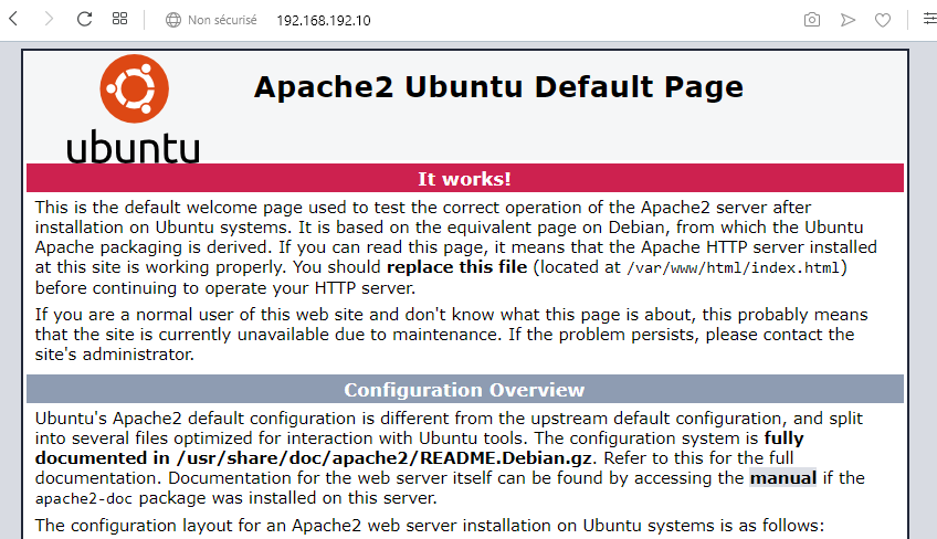 Après un petit moment, mon tuteur me proposa de commencer à me former au développement via OpenClassrooms et m’a donné comme défit de créer une page web qui devrait communiquer avec une base de données. L’idée m’a plu, c’est donc comme cela que j’ai commencé à créer une VM Debian. Une fois toutes les configurations faites, j’ai testé plusieurs manières de créer un site avec base de données. Après de multiples ratés, j’ai décidé de tout simplement installer xampp. XAMPP contient plusieurs programmes entièrement gratuits et faciles à installer tels qu’Apache (pour créer le site), MySQL (la base données), PHP (un langage qui permet de rendre son site interactif) et Perl. Le paquetage open source XAMPP a été mis au point pour être incroyablement facile à installer et à utiliser. Une fois tous ces logiciels installés, il n’y a plus qu’à taper son adresse ip dans la barre de recherche, si tout marche bien et que le serveur apache est en marche, une page comme celle-ci devrait apparaitre :